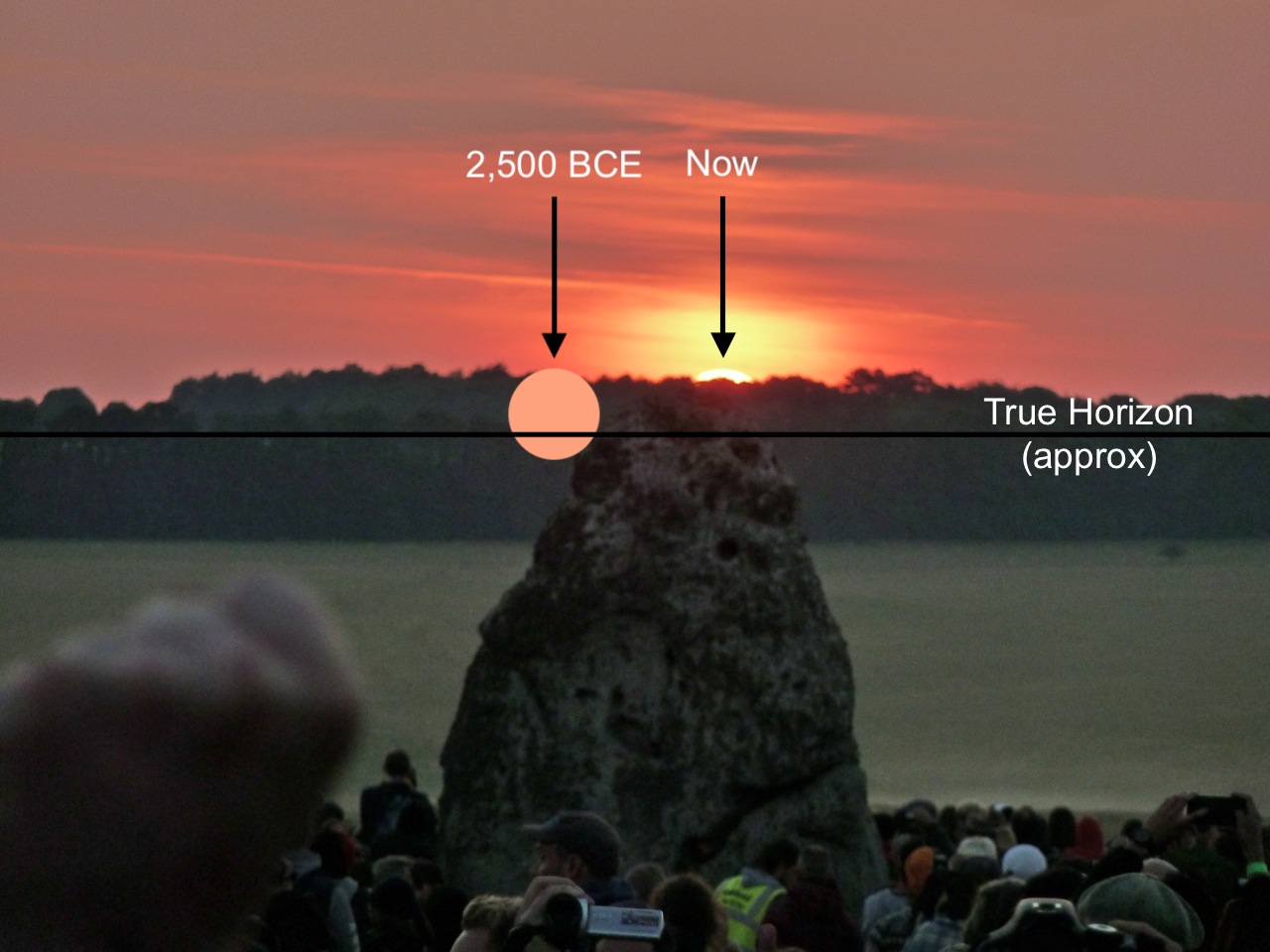 The Sun, today, does not rise and set at the solstices at the same positions on the horizon that it did when Stonehenge was built.